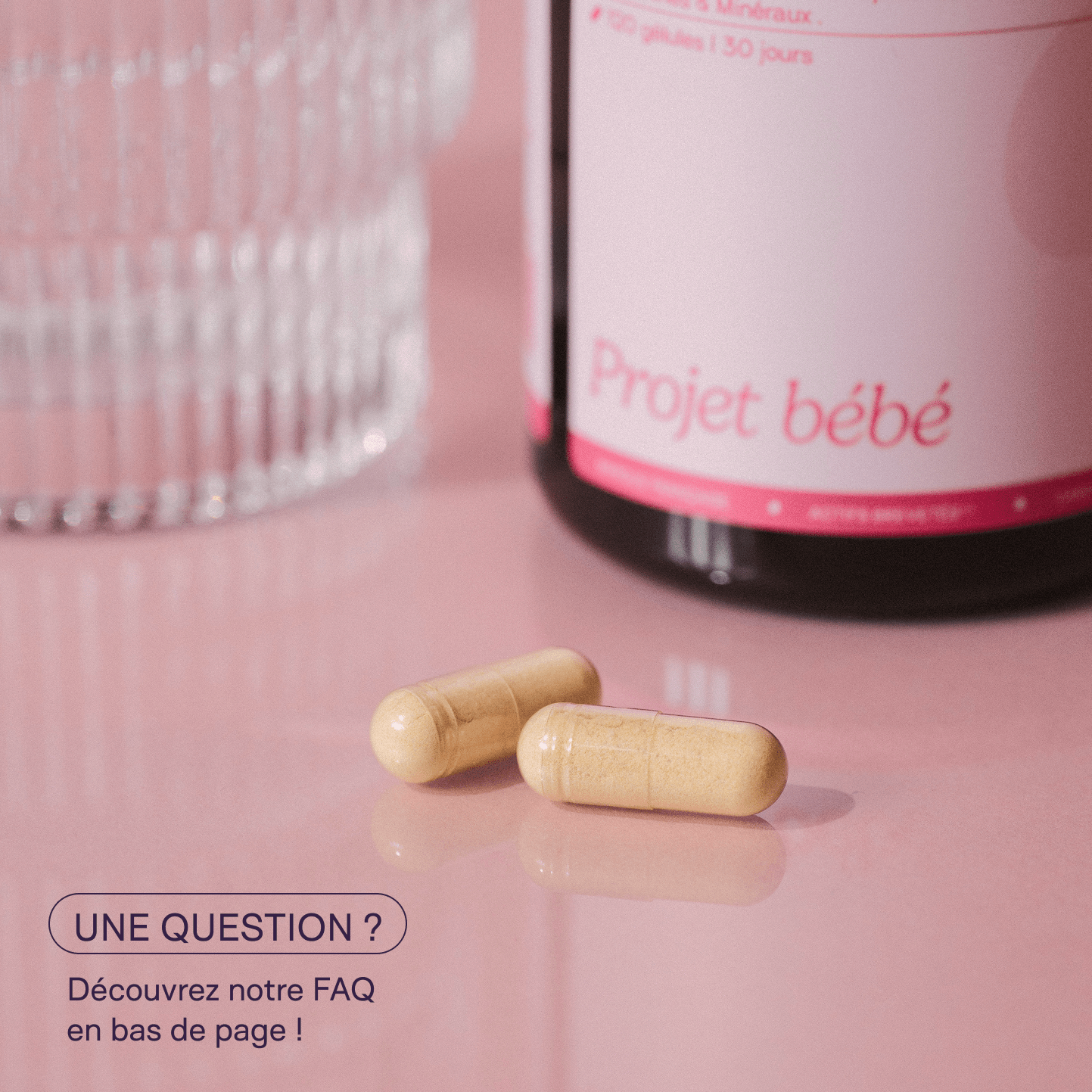 Nous recommandons une prise de 3 à 6 mois, le temps que les bénéfices sur le cycle et l’ovulation s’installent naturellement. Tu peux bien sûr le poursuivre jusqu’à la confirmation de grossesse.